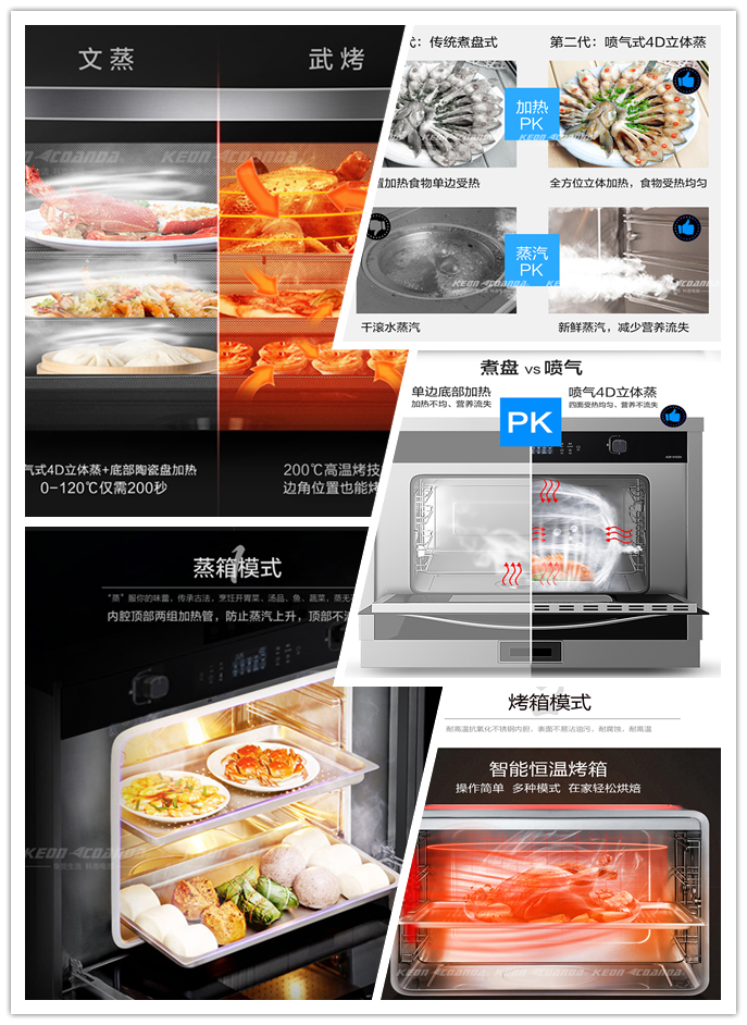 下方搭載的蒸烤消功能,一鍵輕松搞定,通過“薩萊米”陶瓷加熱盤產(chǎn)生蒸汽,并滲入食物中來使食物熟透,底部有一個(gè)光滑平整的加熱盤,隱形導(dǎo)流管將外置水箱中的水引流至加熱盤內(nèi),加熱盤不斷升溫,到一定溫度時(shí),盤內(nèi)的水即會(huì)蒸發(fā)成水蒸汽,蒸汽在箱內(nèi)彌漫,滲入食物中,使美食做到外酥里嫩,營養(yǎng)不流失。多種蒸烤模式選擇能同時(shí)滿足用戶多樣化的烹飪需求,除此之外還有高溫消毒模式,為廣大用戶飲食健康提供有力保障!