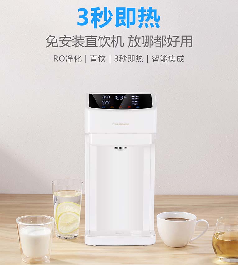 日常飲用水中含有大量的雜質、細菌、微生物、重金屬等有害物質,進入體內,將會嚴重危害我們和家人的健康,健康是一種負責的生活態(tài)度,別再用您的身體過濾了!集成灶十大品牌、廚電行業(yè)十大品牌科恩電器凈飲一體機R6028移動水吧采用四膜七級精濾技術,全新厚膜即熱黑科技,多檔控溫、3秒即熱、1鍵出水,干掉傳統(tǒng)凈水機、飲水機、加熱壺、保溫壺、調溫壺、管線機,六合一引爆全新凈水革命。