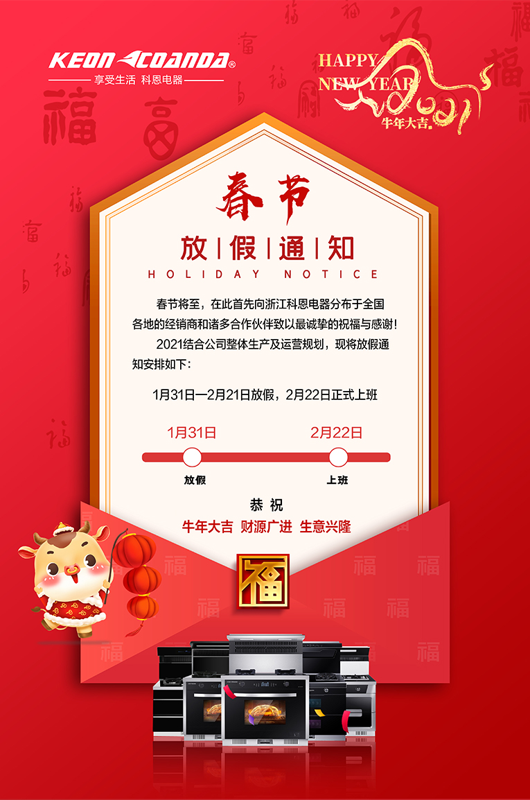 公司放假時間:2021年1月31日(農歷臘月十九)到2021年2月21日(農歷正月初十)