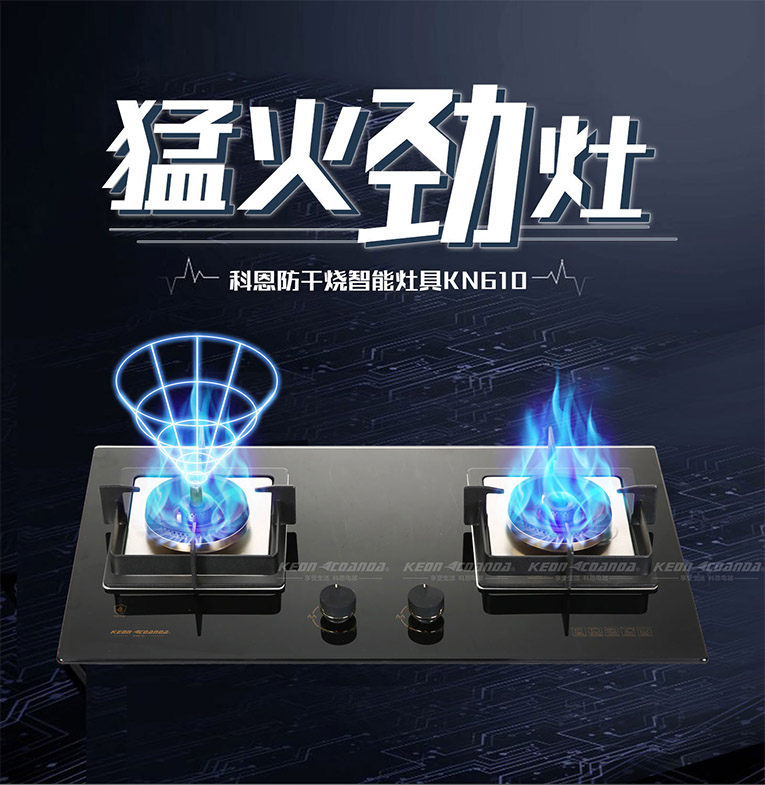 科恩KN610智能防干燒燃氣灶讓下廚成為一種享受,智能防干燒,安全再升級!左爐頭帶防干燒裝置功能,日本進口探頭,持久耐用,意外忘記關火外出干燒時,將會自動關火,再也不用擔心溢鍋、燒干等狀況,讓烹飪更安心、更舒心!其實,燃氣灶哪個好,主要還是體現(xiàn)在火力上,中國人講究爆炒,大火力才能使得爆炒更高效,集成灶十大品牌、廚電行業(yè)十大品牌科恩KN610智能防干燒灶具采用5.0KW精控勁火,火焰平穩(wěn)受熱均勻!一級能效66%的熱效率,燃燒更充分,KN610灶具能夠快速升溫催熟食材,烹制出口感好、色澤美、味道香的美食。
