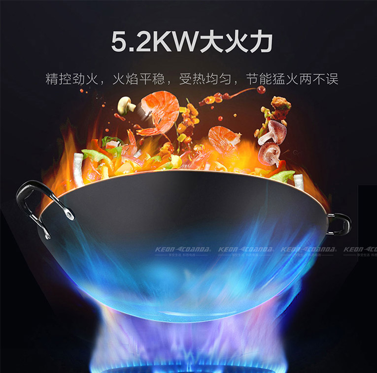 人要忠心,火藥空心,要想炒菜火候足,空間留的對才重要,不斷補充新鮮空氣,才能拿提高燃燒效率!集成灶十大品牌、廚電行業十大品牌科恩KN610智能防干燒灶具采用全進風鋁合金爐頭,不僅燃燒效率高還起到了抗氧化及耐腐蝕的作用。5.2KW大火力精控勁火,大火夠猛小火夠小,可瞬間實現高溫爆炒,也可以保持穩定燃燒,細煮慢燉,原味盡情釋放。