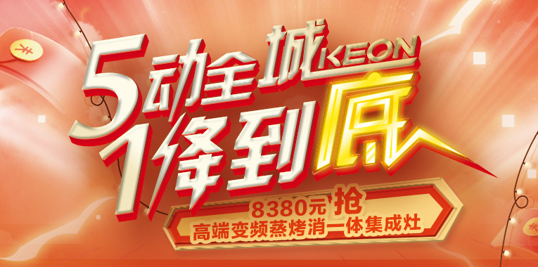 4月20日至5月5日,集成灶十大品牌、廚電行業(yè)十大品牌科恩集成灶“5動(dòng)全城,1降到底”,上天貓京東,下終端門店,8380元就能把高端變頻蒸烤消一體集成灶到回家!
