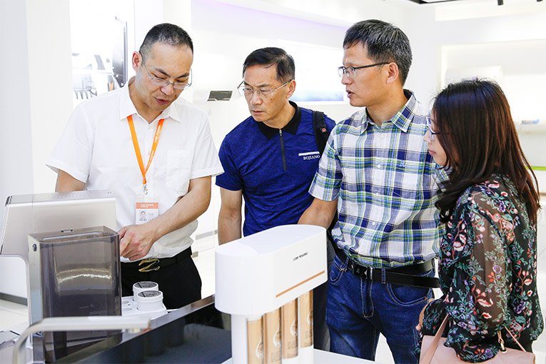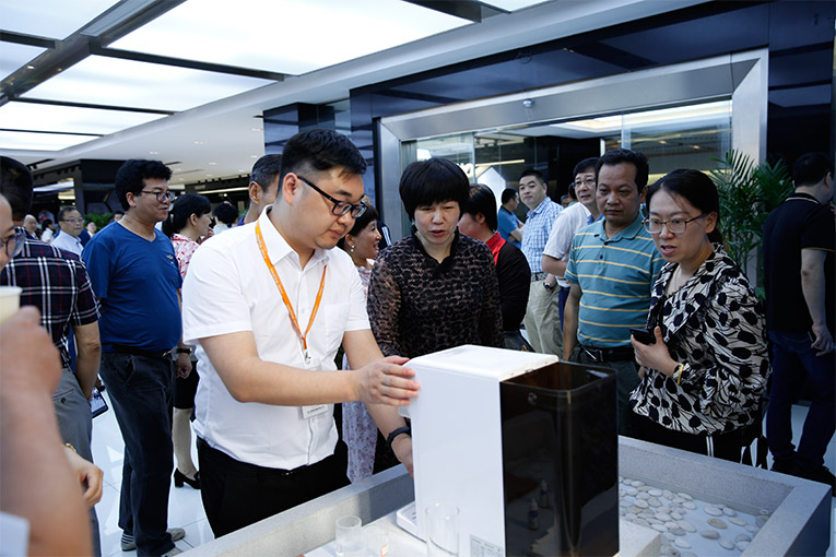 交流會上,董事長俞鋒講述其科恩電器十余年的發展征程, 磨礪出尖峰,科恩快速被市場廣泛接納、被消費者所認可,良好的品牌形象和知名度、獨特的產品品質、合理的價格和服務讓科恩電器漸漸走向高端。隨后,俞董事長重點介紹并演示了科恩為響應“綠色家電”消費,重點研發的環保“黑科技”——科恩移動水吧。健康飲水倡導者,全品類廚電質造專家科恩電器憑借移動水吧榮獲“工業設計大賽產品設計優秀獎”,這一殊榮充分展現了科恩電器的工業設計實力,也是行業對科恩電器在工業設計領域成績的充分認可。