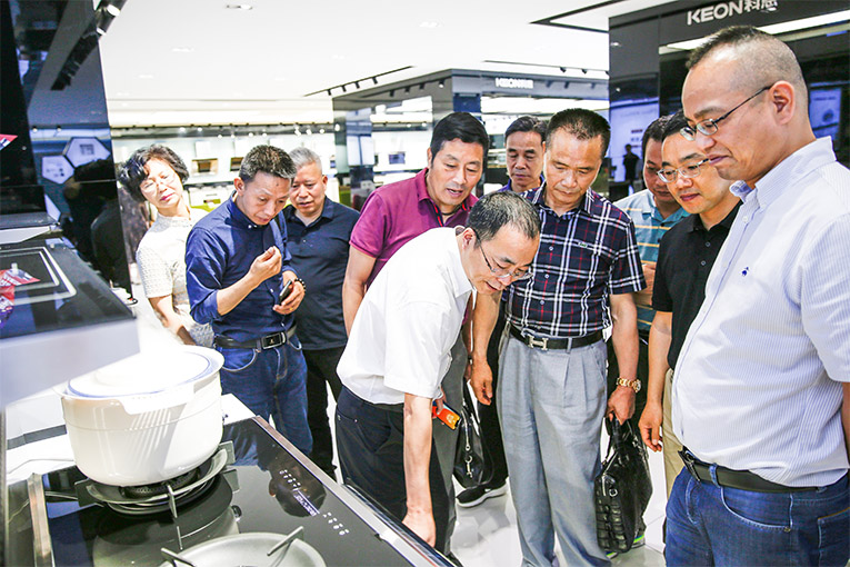 企業代表團首先參觀集成灶十大品牌、廚電行業十大品牌浙江科恩電器的智能現代化廠區,氣勢恢弘的現代化行政辦公大樓、CNAS國家認可實驗室、高科技智能廚房體驗展館等,一流的設備、一流的工藝、苛刻的質量檢驗,高效的生產效率,嚴謹的檢測程序及優異產品品質都讓百余位企業家贊嘆不已!