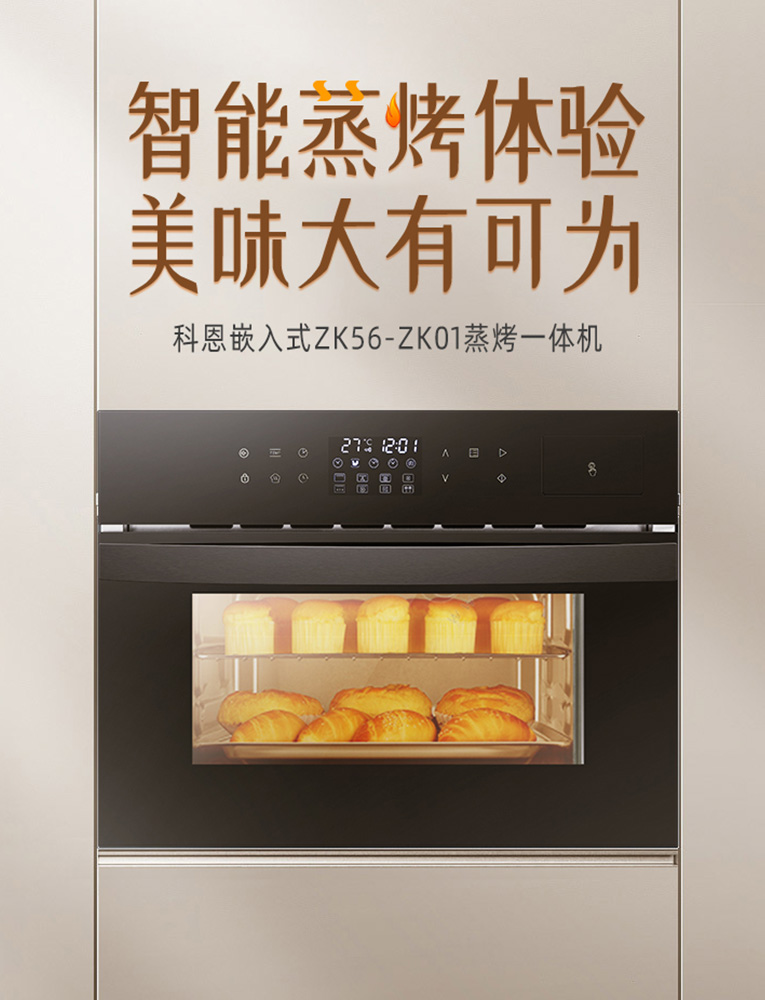 食材蒸不熟、燒烤不入味?那是因為沒選好蒸烤一體機,蒸烤一體機哪個品牌好,認準集成灶十大品牌、廚電行業十大品牌科恩ZK01蒸烤一體機,輕松解鎖簡單烹飪方式。
