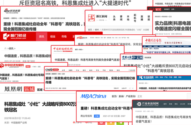 此番科恩集成灶斥資800萬(wàn)投放高鐵列車(chē),整合全網(wǎng)主流媒體進(jìn)行針對(duì)性內(nèi)容營(yíng)銷(xiāo),以創(chuàng)意廣告和推廣內(nèi)容,360°全方位品牌曝光,進(jìn)一步樹(shù)立品牌形象,擴(kuò)大品牌影響力。