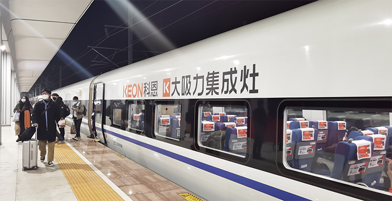 杭紹臺高鐵通車背后,預示著一個新時代的到來,同時也開啟了科恩集成灶的發展新篇章。2022.1.17春運第一天,科恩集成灶冠名的高鐵專列駛入嵊州,“科恩號”將承載春運的使命,搭載全國各地的朋友回家過新年。