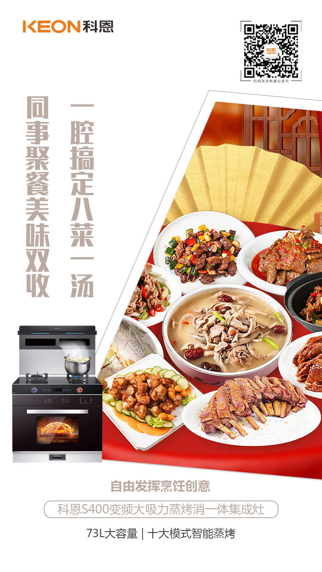 驅散夏日炎熱,讓夏天愛上下廚房,用科恩S400變頻大吸力蒸烤消一體集成灶,文蒸武烤,美味即刻上桌!