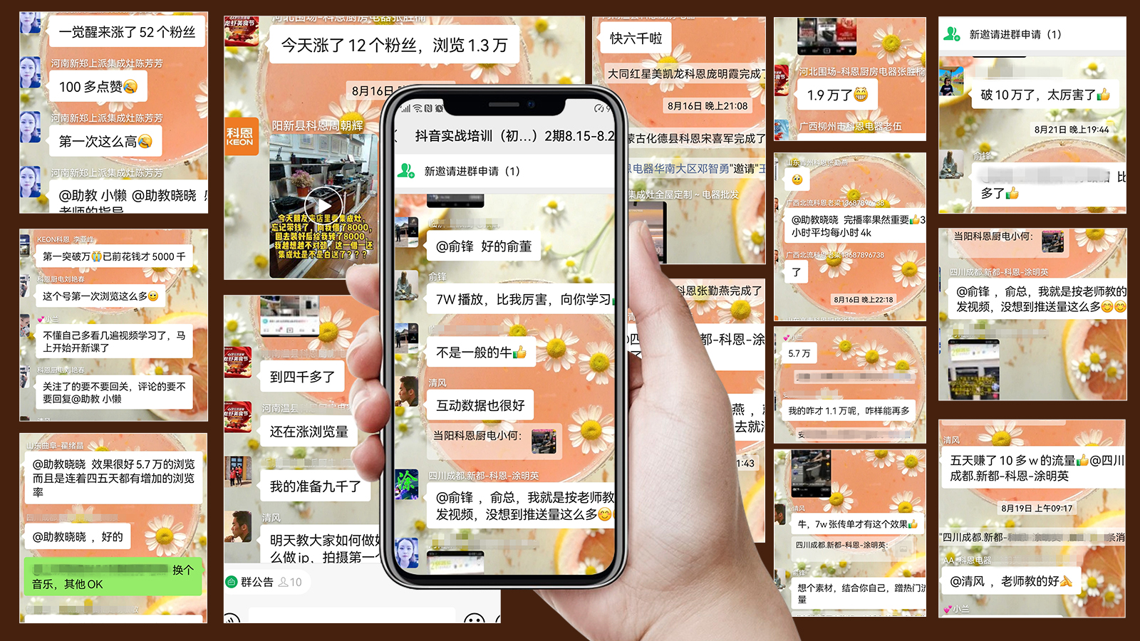 在通過抖音實(shí)戰(zhàn)強(qiáng)化培訓(xùn)之后,大家都收獲滿滿,要求總部能提供更高、更專業(yè)的抖音技能,為此,科恩總部特開設(shè)抖音21天陪跑計(jì)劃高級(jí)班!