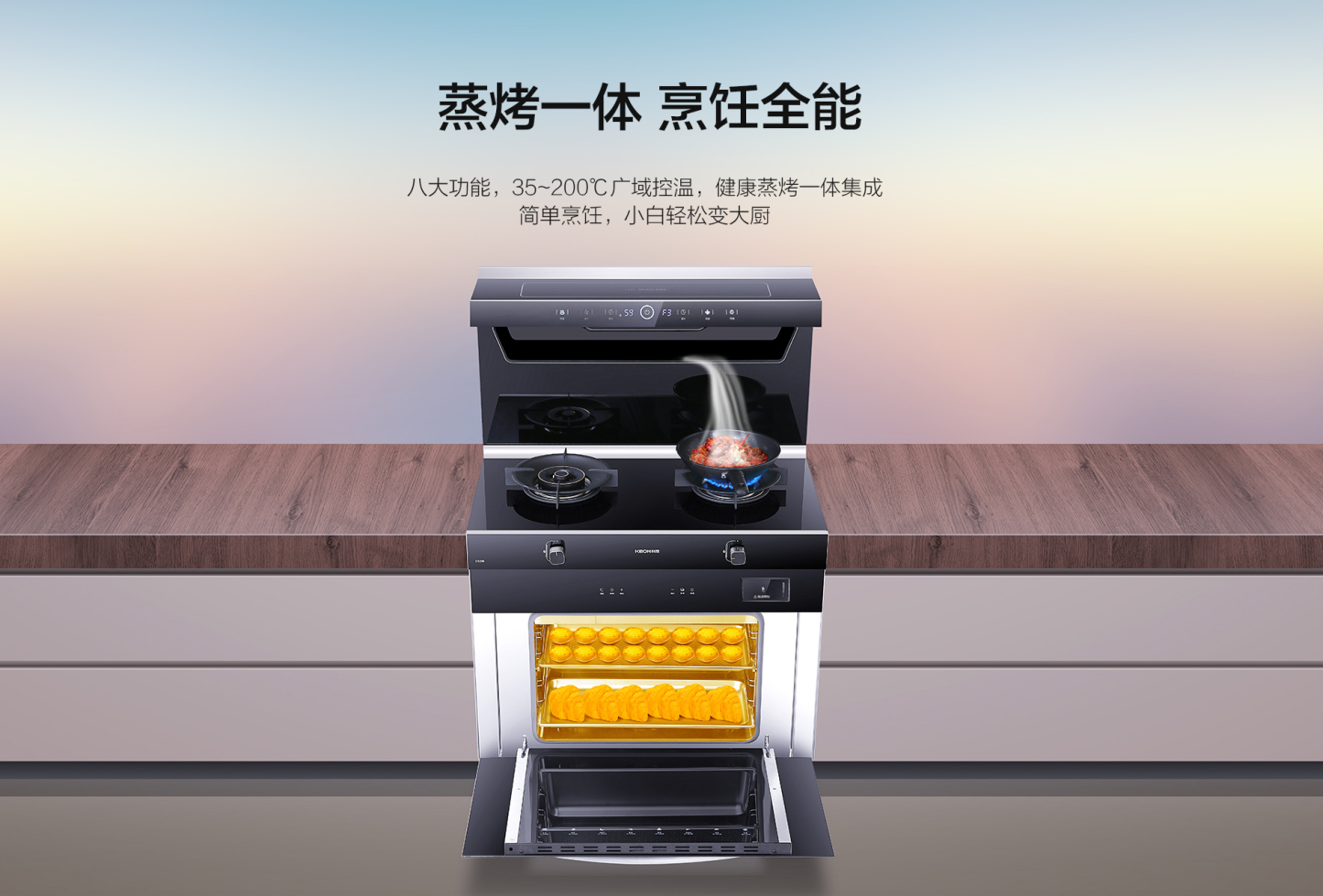 ◆八大烹飪模式,35-200℃廣域控溫,健康蒸烤一體集成,簡單烹飪,小白輕松變大廚!