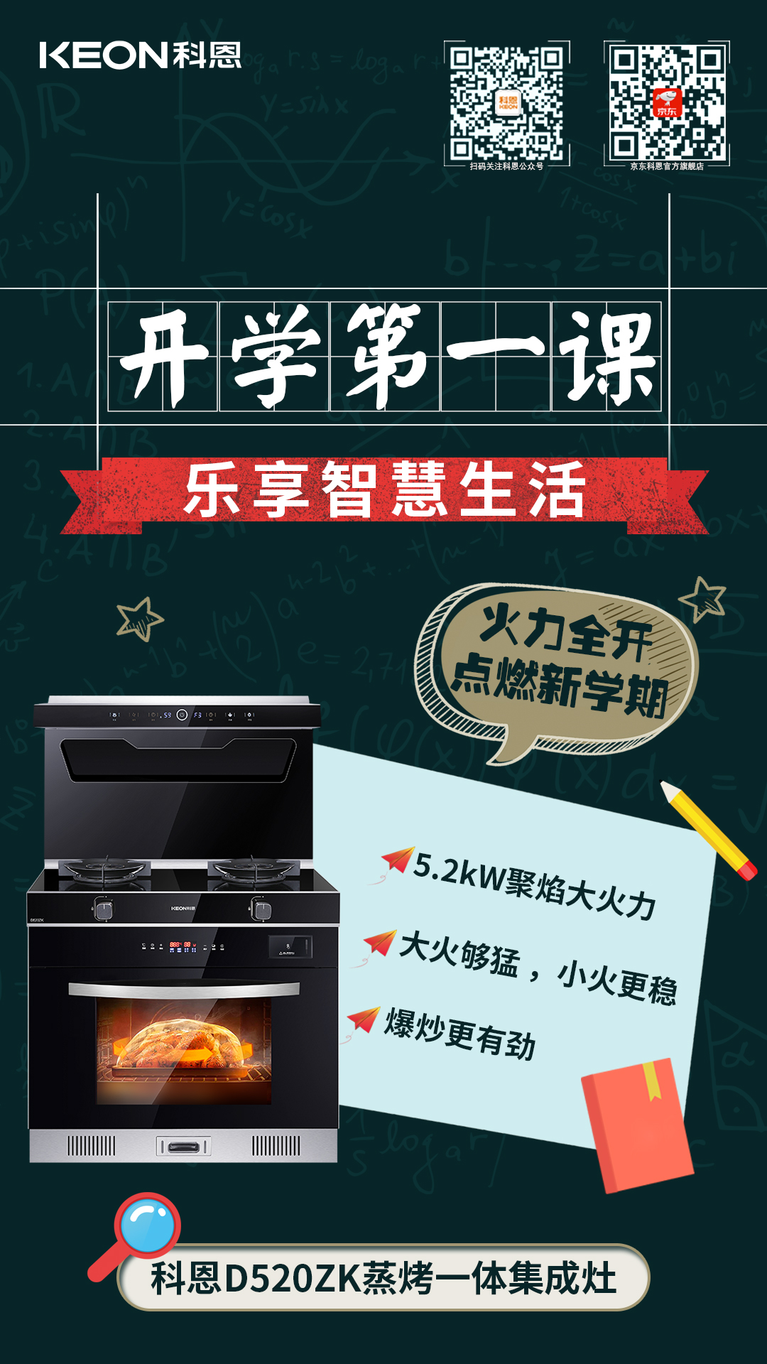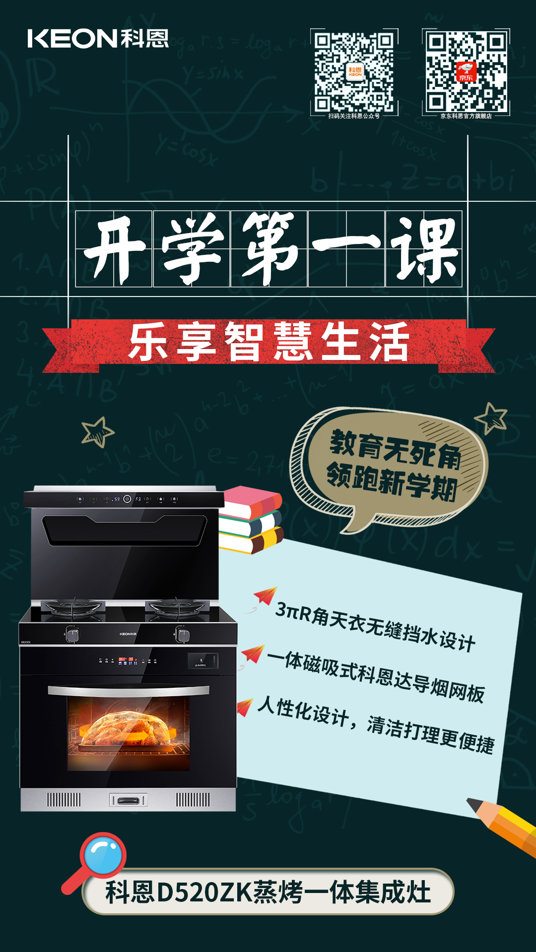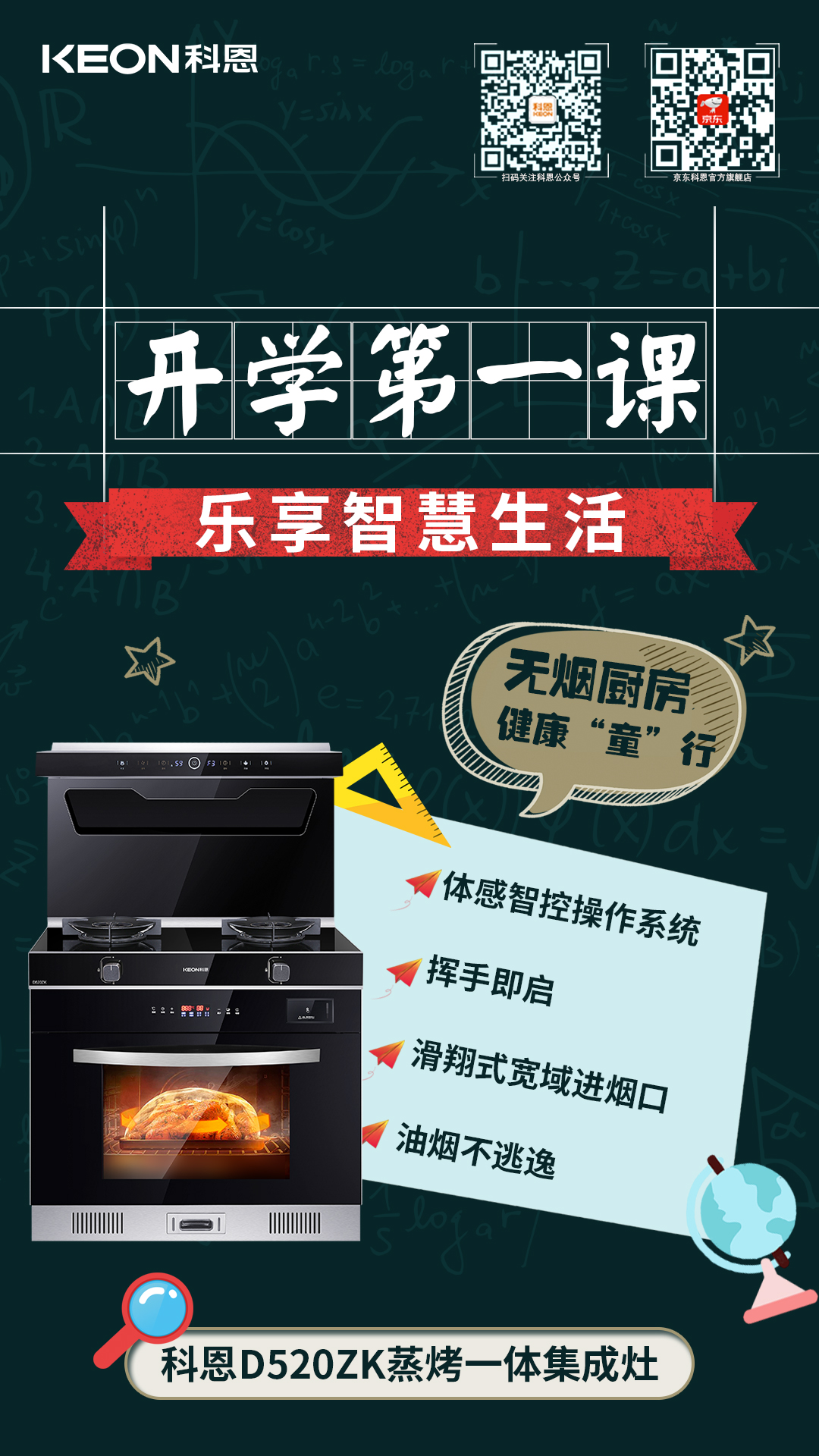 開學季!打開高質量開局,迎接新的挑戰,為孩子筑牢健康防線,為開學貼心護航,科恩集成灶陪你一起沖!