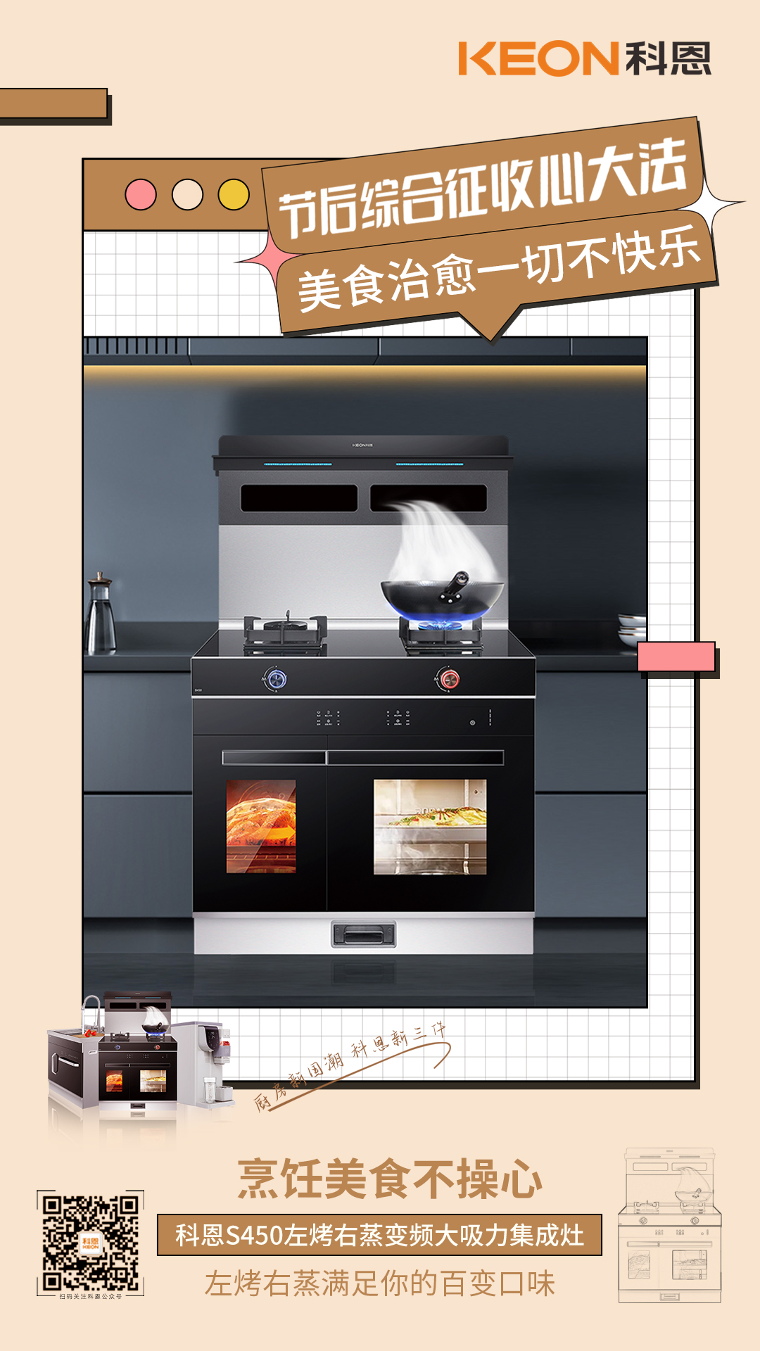 節(jié)后不適太痛苦,科恩集成智慧廚房有良方,廚房新國(guó)潮科恩新三件 ,輕松抵御節(jié)后綜合征!