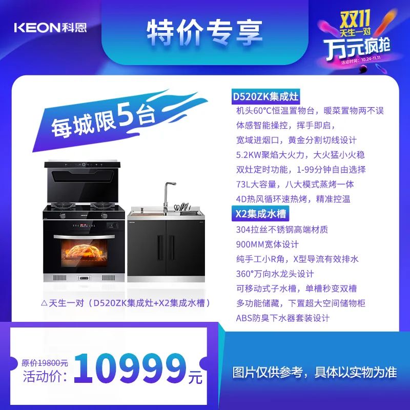 科恩X2集成水槽+D520ZK集成灶,套購即享特價(jià)優(yōu)惠,集成智慧廚房萬元搬回家
