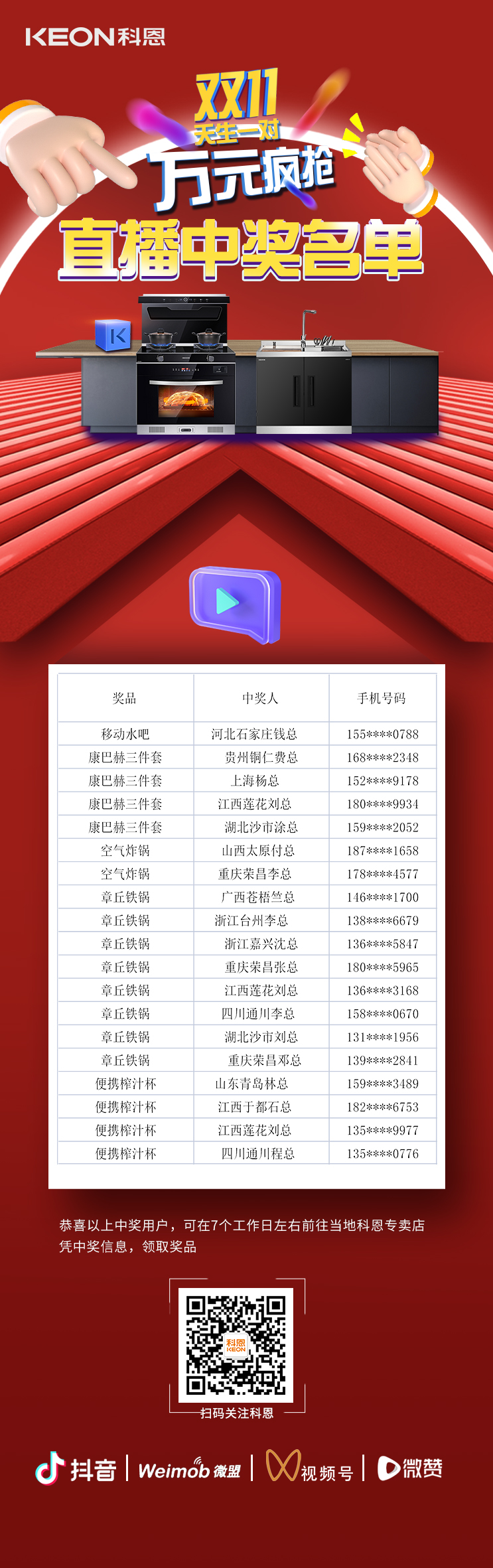天生一對,萬元瘋搶,雙11直播間中獎名單公布!