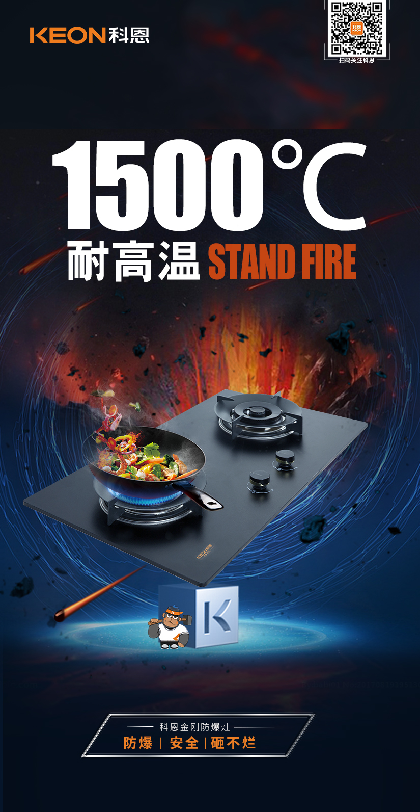 相較于市面上普通鋼化玻璃面板,科恩采用了超細晶、高均質(zhì)新型硅碳合金金剛板!更堅可不摧 ,可耐高溫1500℃!真正做到防爆、安全、砸不爛!無懼各種極限考驗!