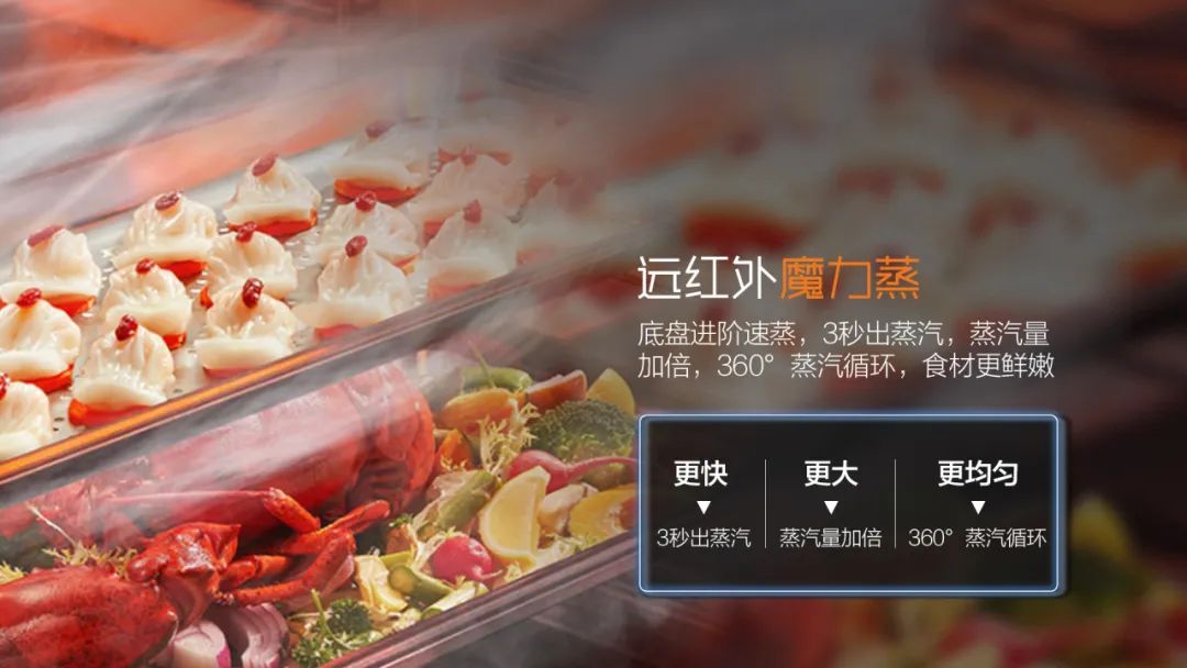 遠紅外魔力蒸底盤進階速蒸,3秒出蒸汽,蒸汽量加倍,360°蒸汽循環