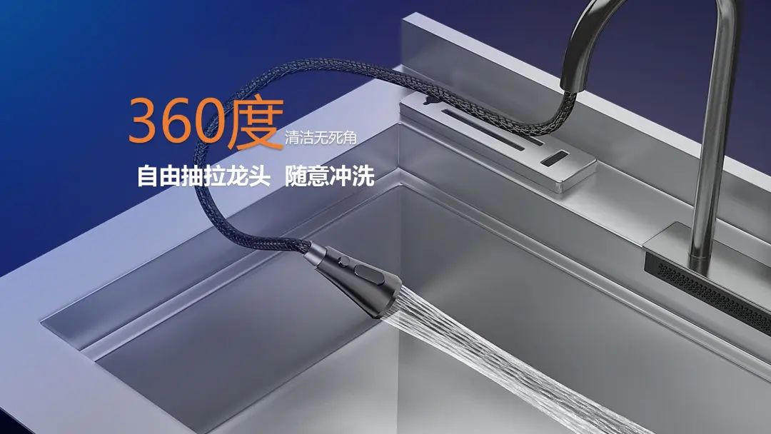 科恩X6L貼心設置抽拉式水龍頭,可實現(xiàn)360度無死角清洗。