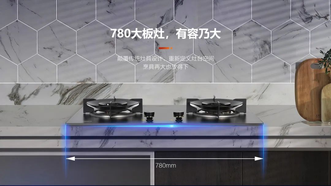 KN700采用780MM大板灶,再大的鍋具都能放下。