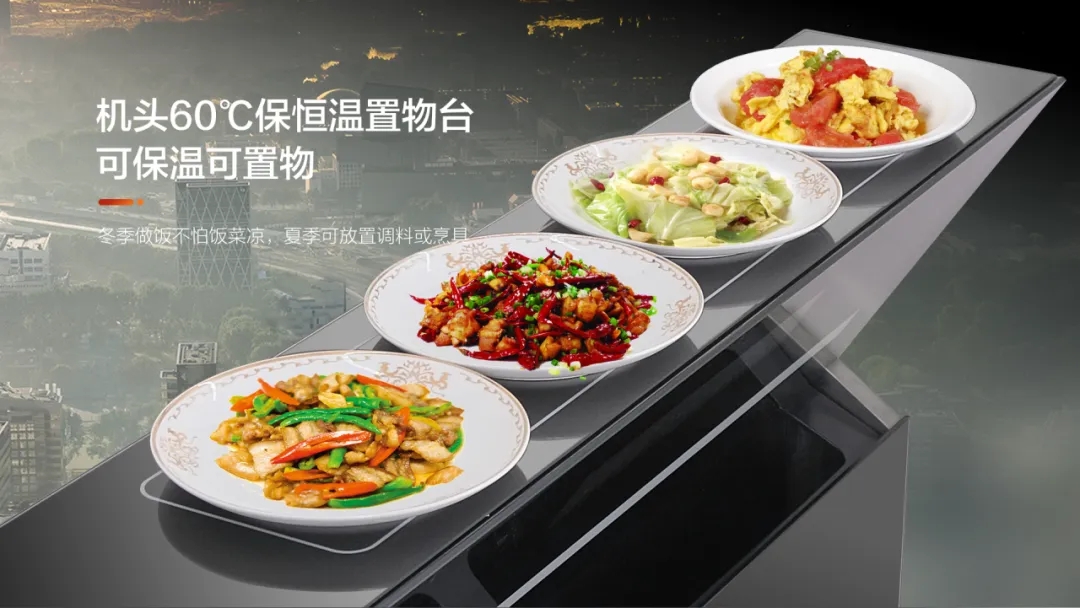60度恒溫置物臺,避免菜肴二次加熱。