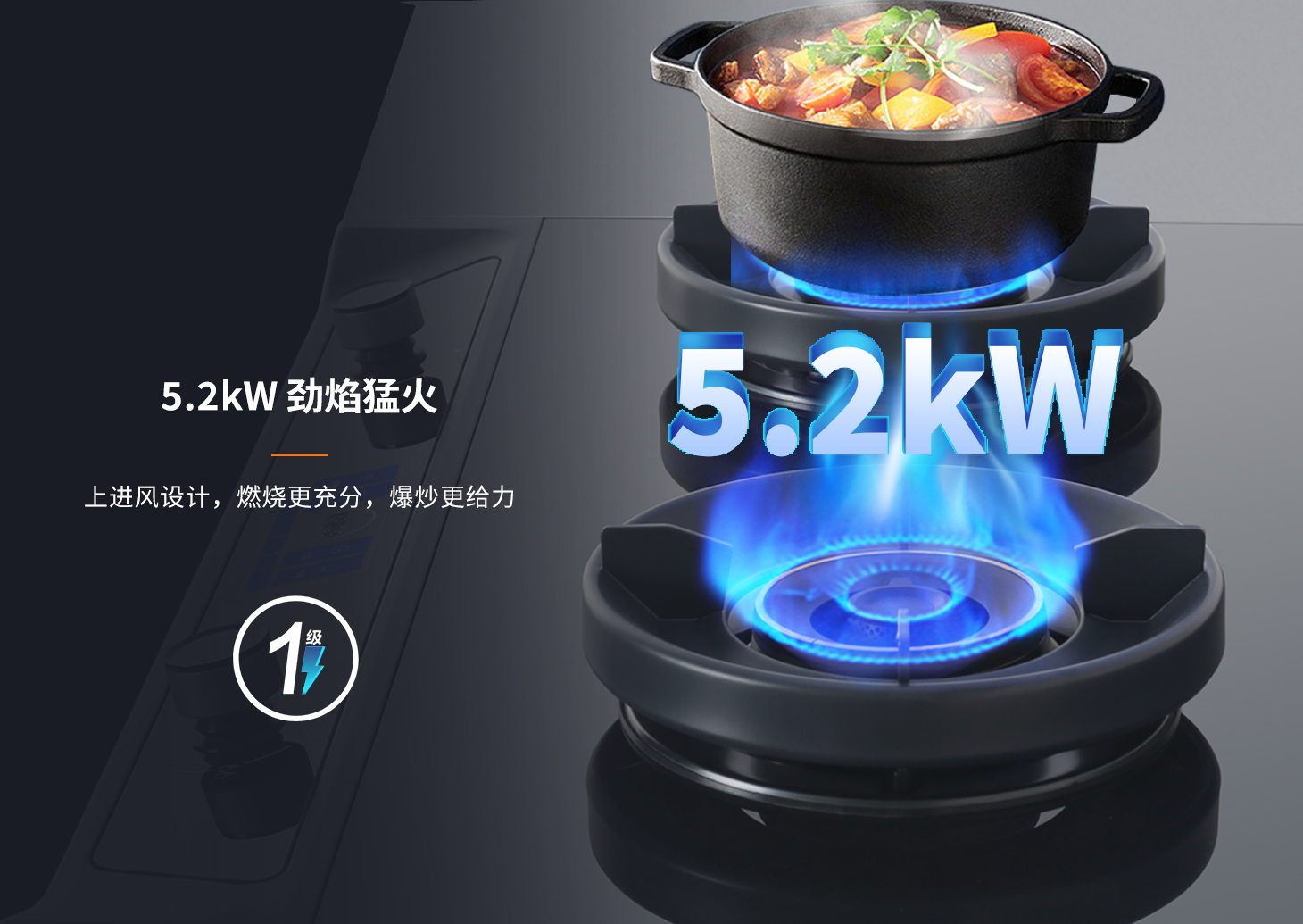 煙灶聯(lián)動,凈煙無憂。免除手忙腳亂操控,科恩集成烹飪中心,煙灶智控互聯(lián),開火即排煙。5.2KW藍(lán)焰猛火系統(tǒng),實現(xiàn)快速升溫,煎炒炸烙樣樣拿手,廚房小白也能變身中華小當(dāng)家。