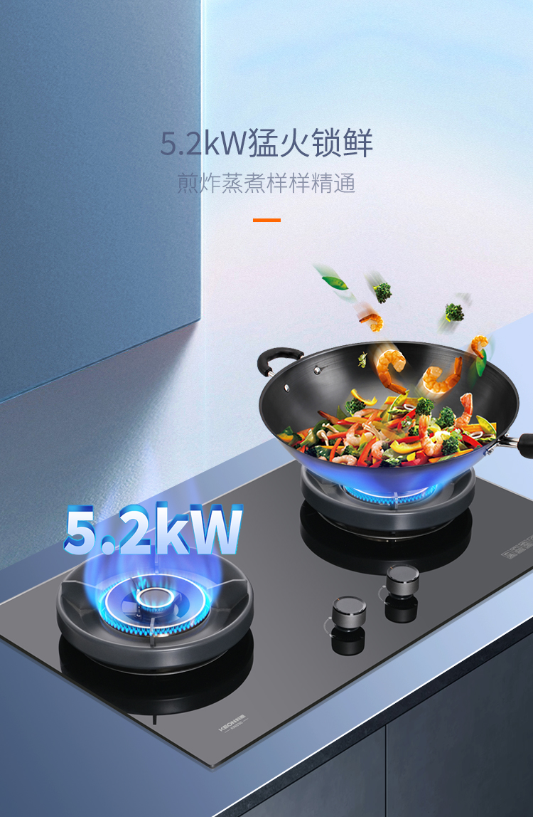 舊灶換新生,廚房有新意。臺嵌兩用,換新優選。可調節底盤設計,換灶零門檻不擴孔不改孔,老廚房無縫升級科恩KN530灶具即將來襲,安裝無拘束,安全常在線解鎖烹飪新體驗。黑晶美學,廚房新名片。黑晶鋼化玻璃面板,輕奢大氣,抗爆耐刮,防滑旋鈕拒絕燙手尷尬,采用鋁合金爐頭,防生銹耐腐蝕,讓灶臺變身藝術品展覽區。5.2KW猛火是爆炒的底氣,激發食材本味,享受大廚風味。0°-170° 的寬域控火藏著細膩,收放自如,多種烹飪模式輕松應對。多重凈燃科技,高效倍省氣,KN530灶具,點燃你的烹飪熱情。