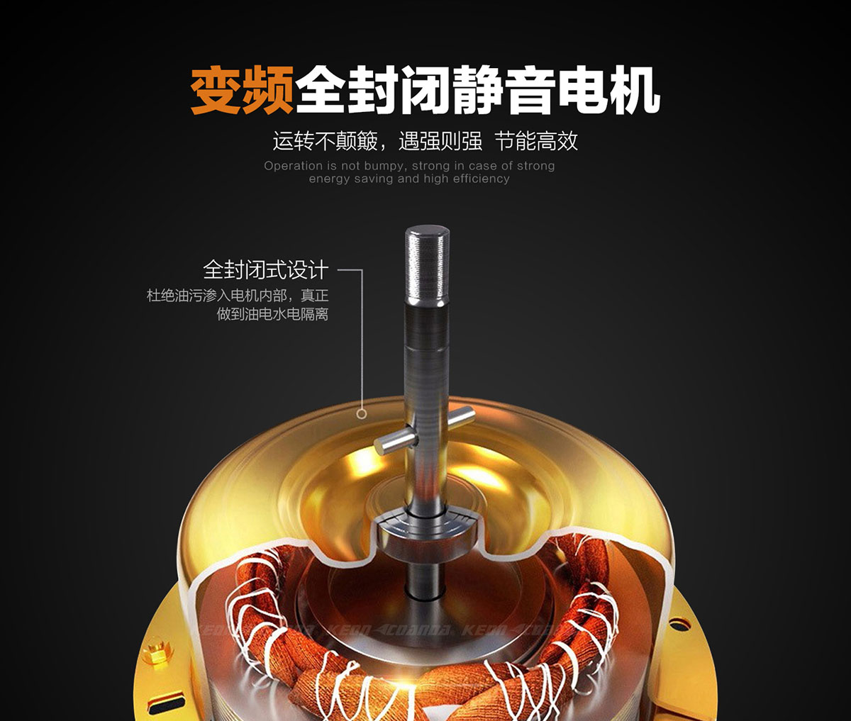 全封閉雙滾珠靜音電機,高速運轉不顛簸,高效耐用,防銹耐污。
