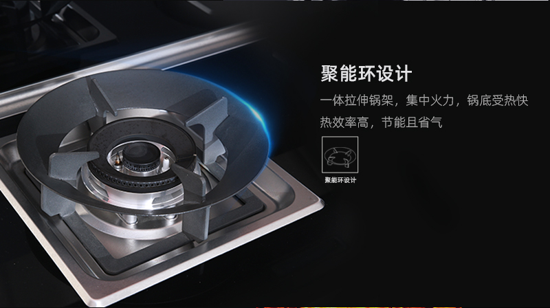 5.0kW大火力猛火快烹,58純銅火蓋,鋁合金瓷化爐頭,上進風四通道進氣