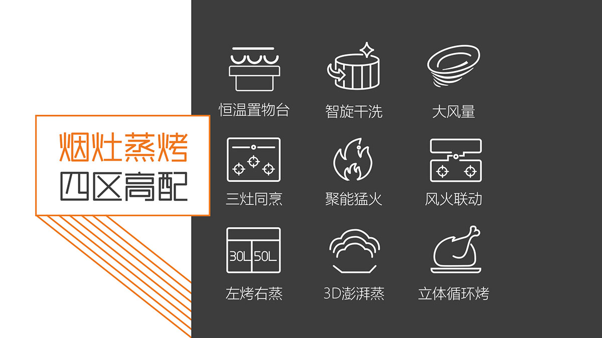 - 三灶同烹,5.0kW猛火爆炒+1.6kW文火慢燉,高效全能,美味加速