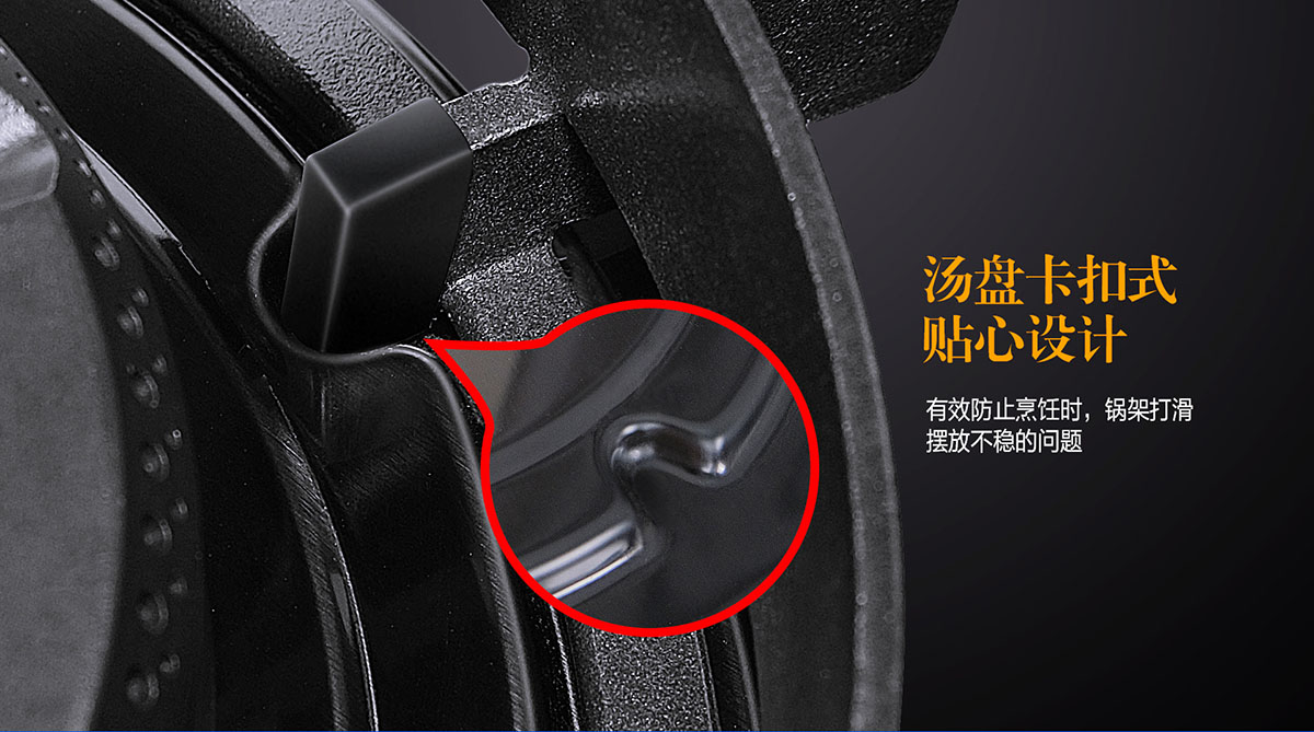 • 湯盤與鍋架采用靜音卡扣式定位固定,不滑鍋更安全