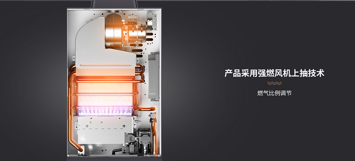 - 產(chǎn)品采⽤強燃⻛機上抽技術,燃⽓⽐例調(diào)節(jié)