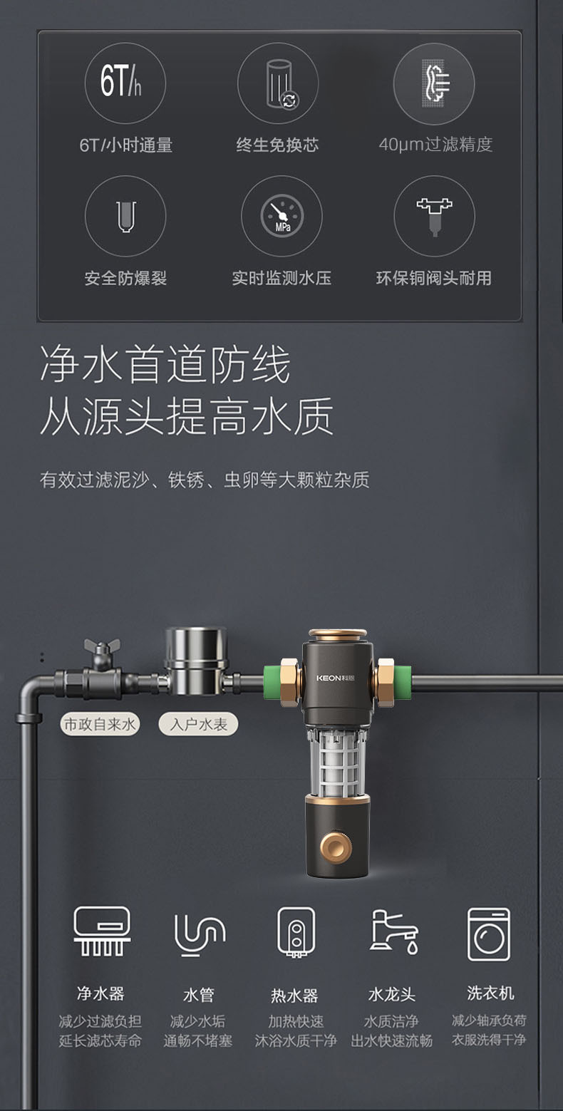 6噸/小時大流量,快速過濾,全屋用水無壓力