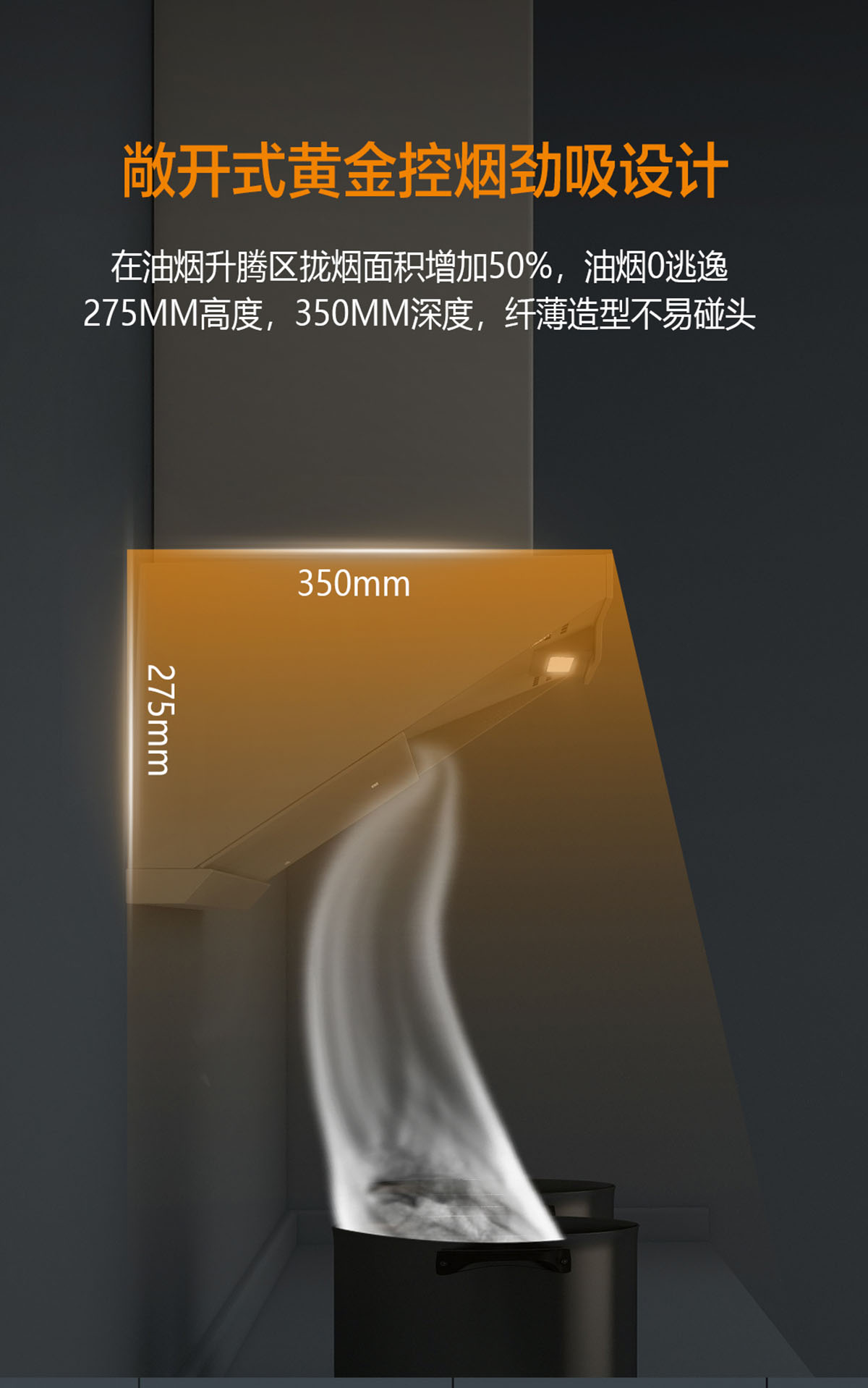 黃金控?zé)焺盼O(shè)計(jì),攏煙面積增加50%,油煙0逃逸