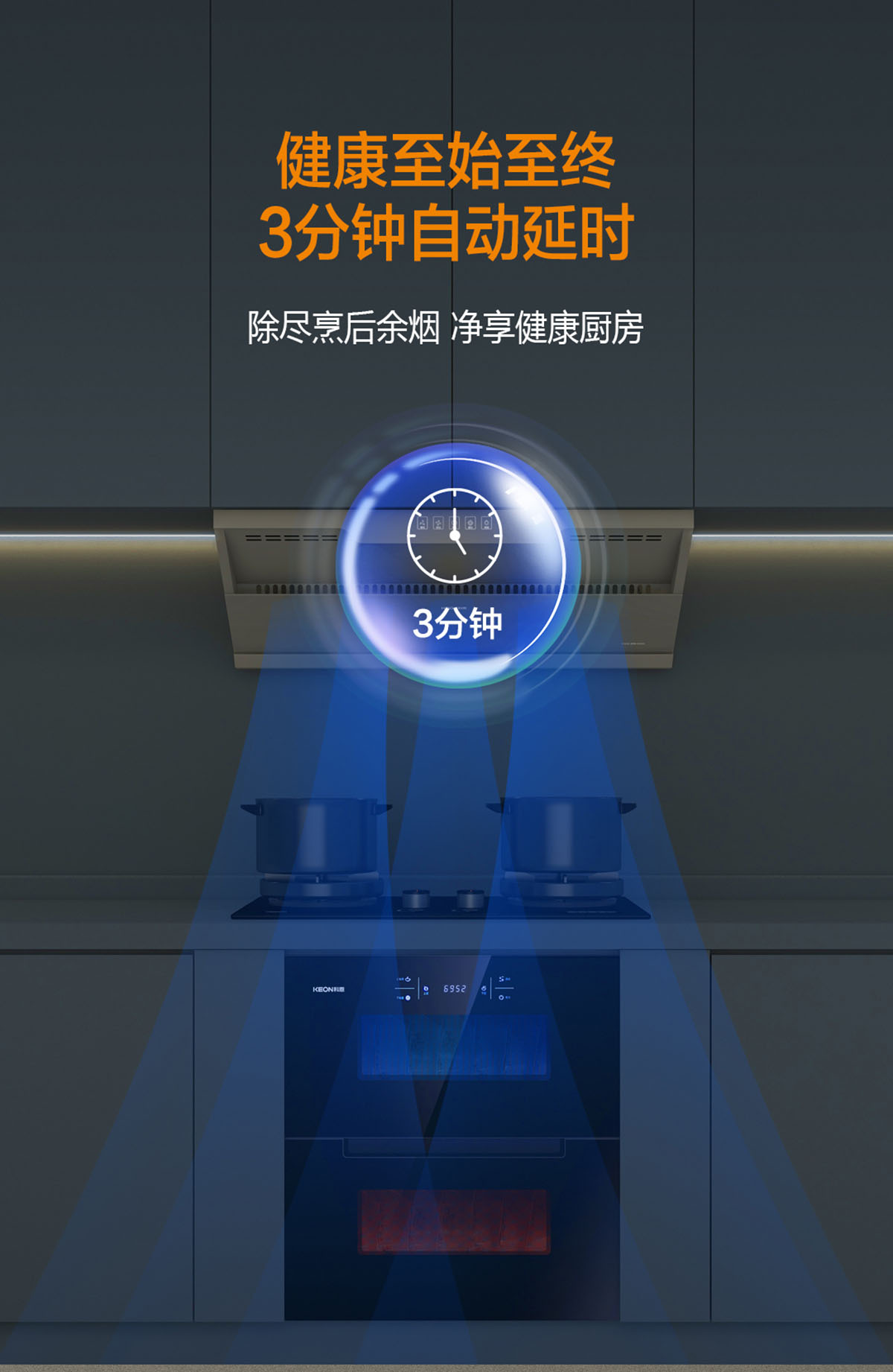 健康至始至終,3分鐘自動(dòng)延時(shí),除盡烹后余煙