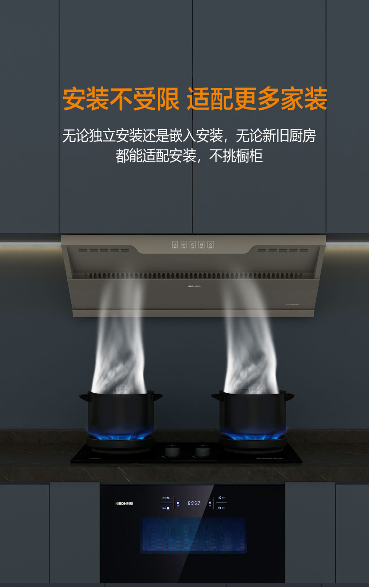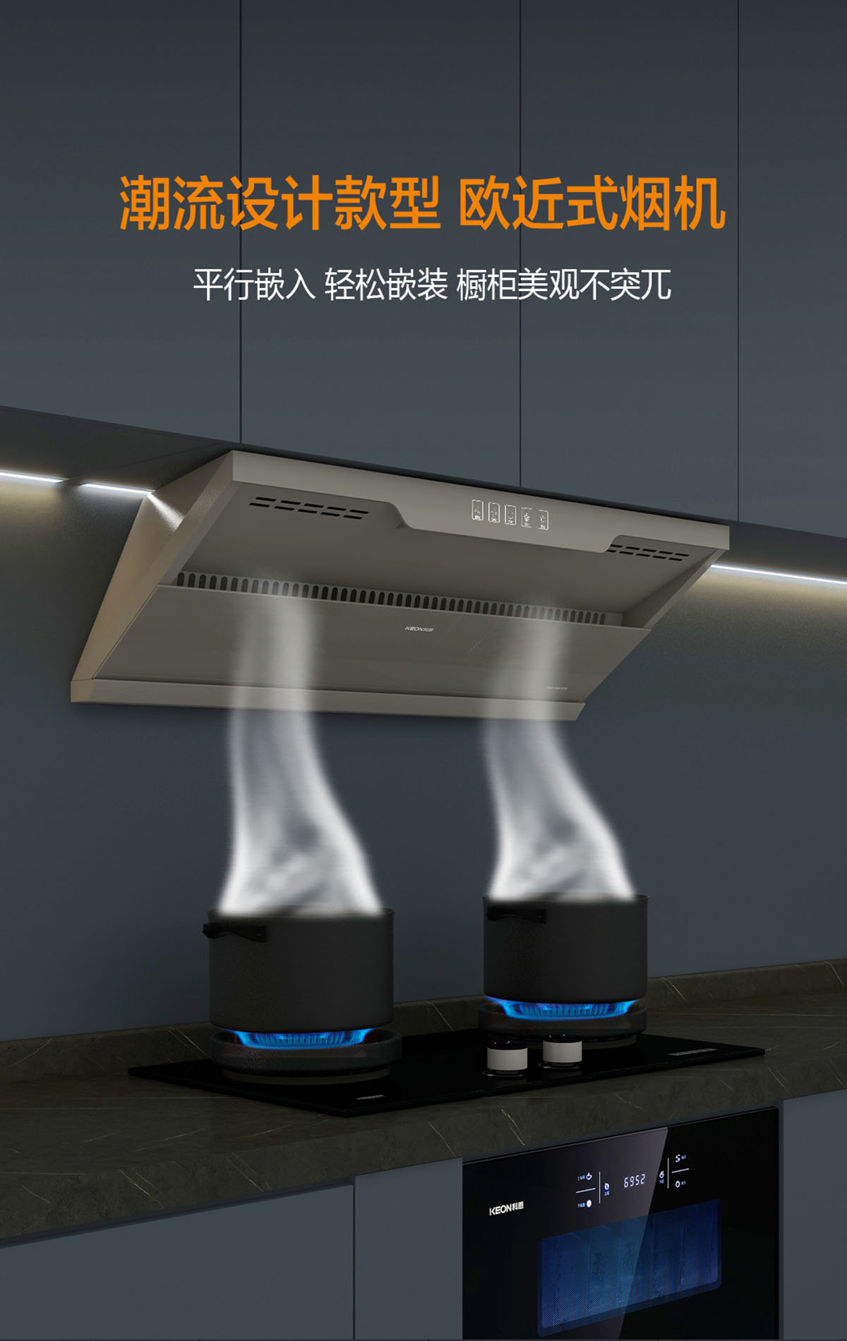 歐近式煙機(jī),平行嵌入,輕松嵌裝,櫥柜美觀不突兀