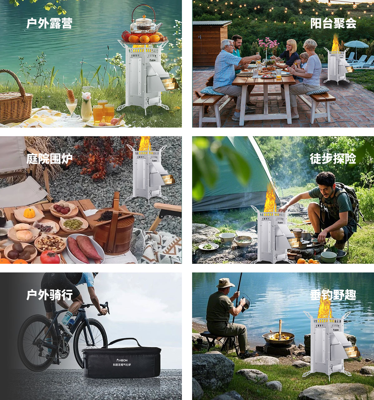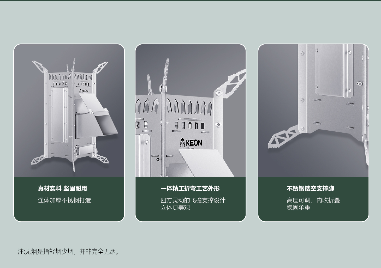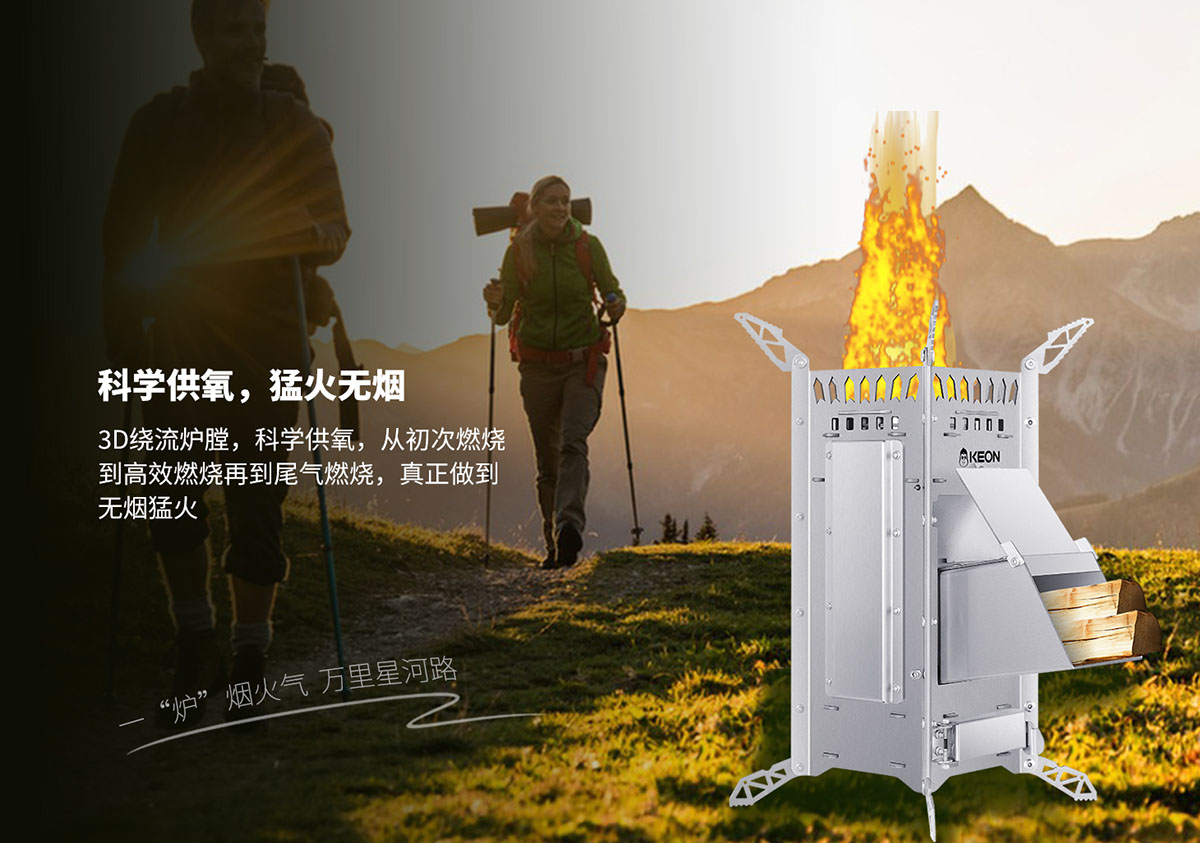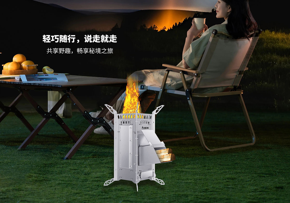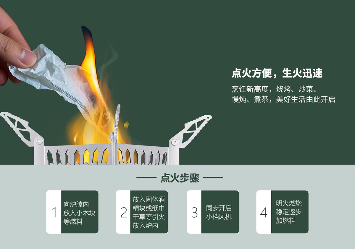 內置可收縮添柴口,下置補氣風門,支持雙模式燃燒