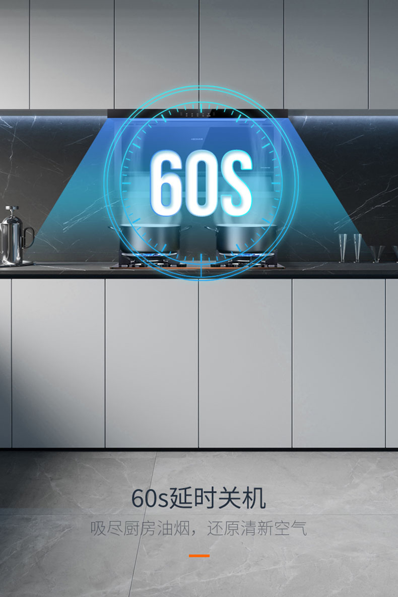 60s延時關(guān)機吸盡剩余油煙,吸盡廚房雜味,還原清新空氣