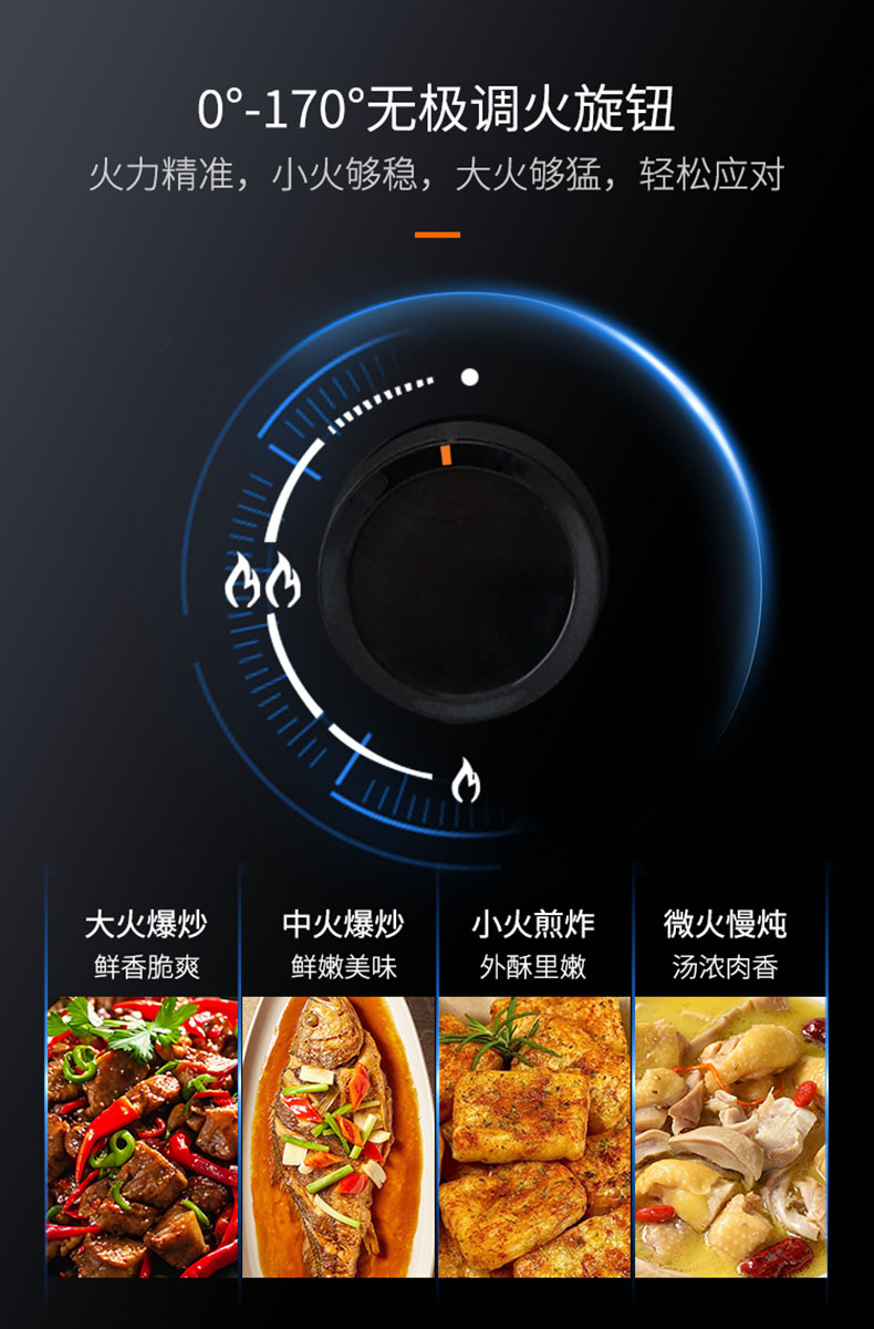 - 0°-170°無極調火旋鈕,火力大小精準控制